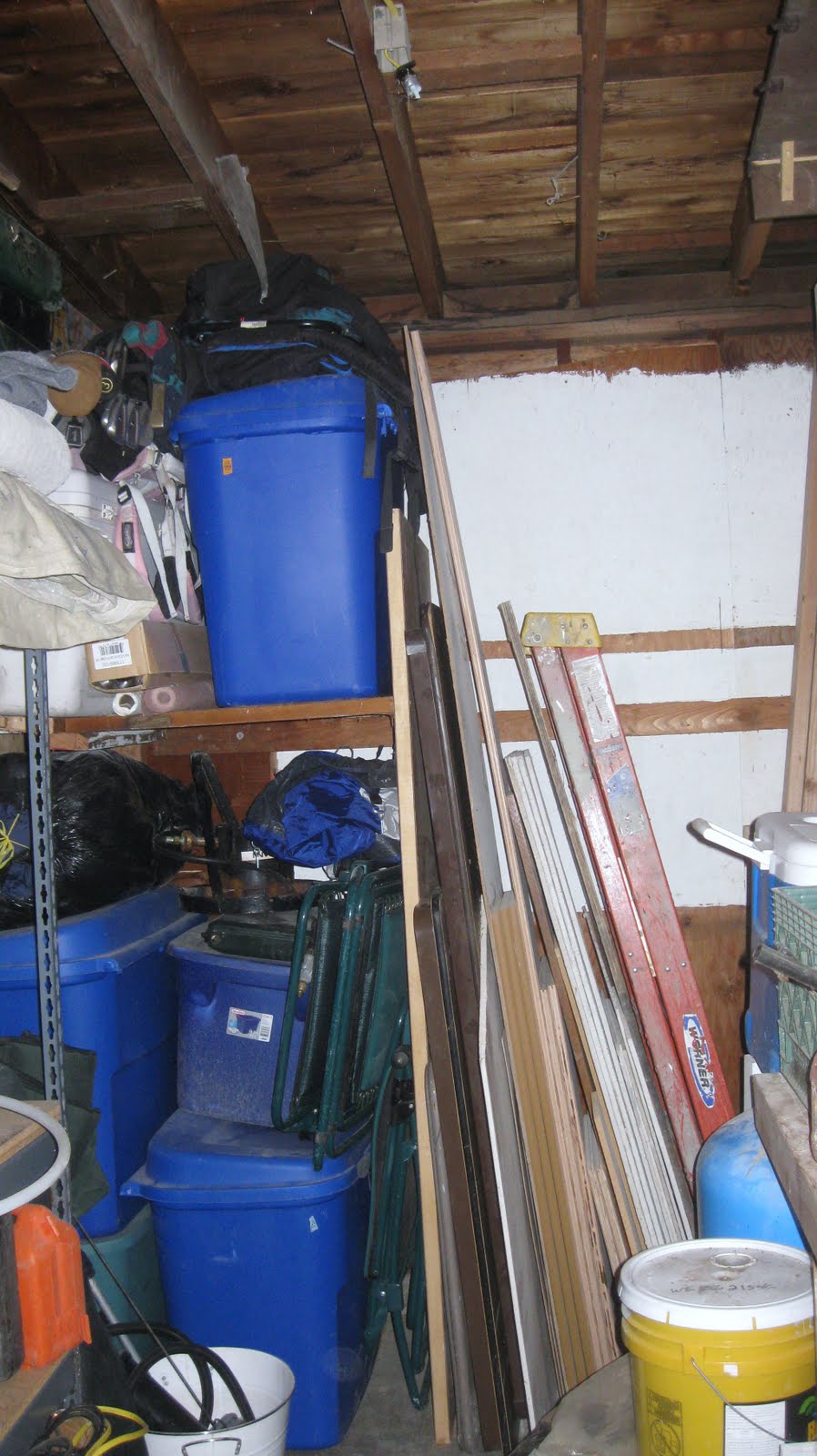 So here's his shop completely organized with our camping gear/hiking/floating gear on the left and stacks of lumber on the right. Everything is super easy to get to and he's now able to see what lumber he has on hand so he's not buying doubles (I've said this before but lack of organization can seriously get expensive if you're constantly buying doubles of something you already had but couldn't find)
